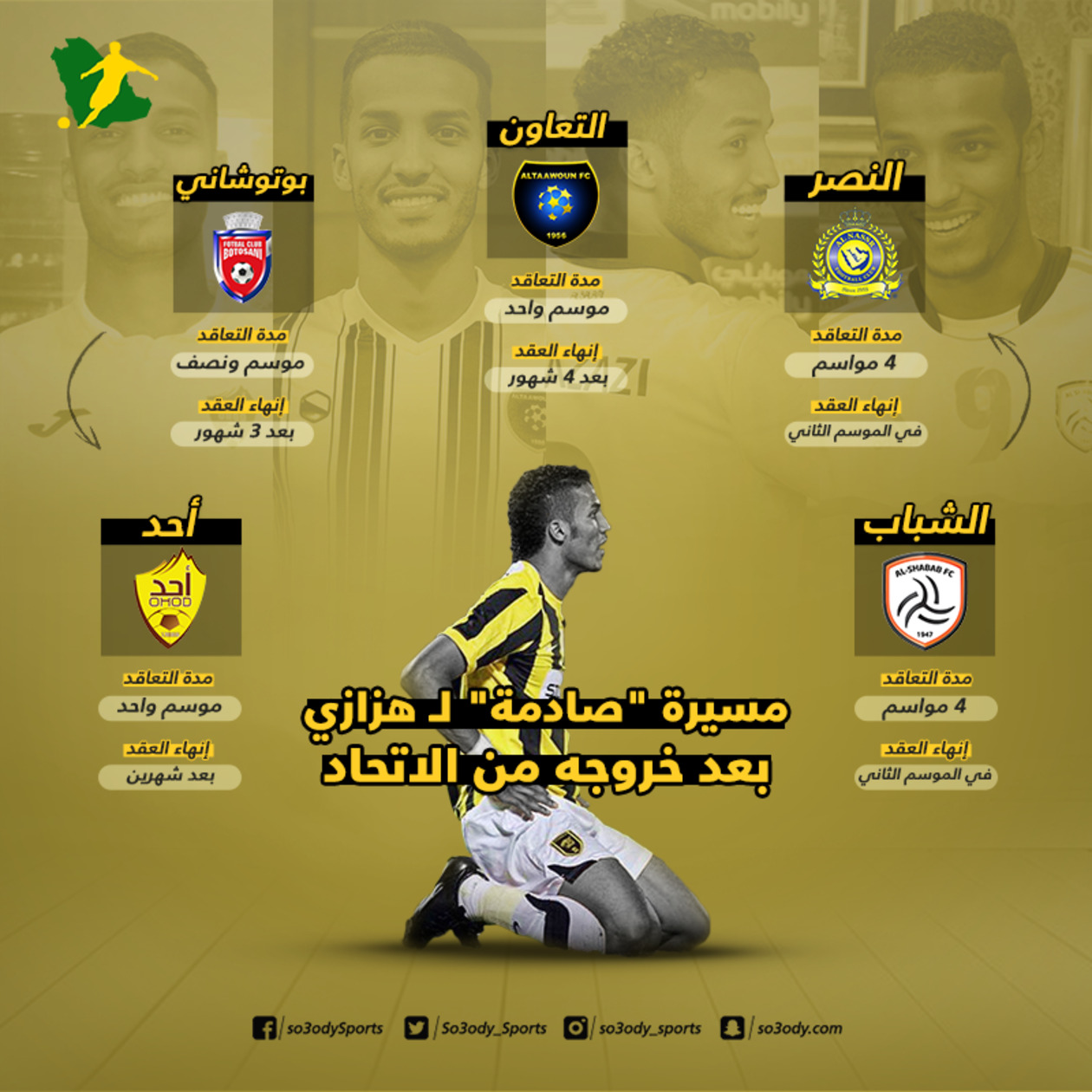 وكان انتقل هزازي لنادي أحد مطلع الموسم الجاري، لمدة موسم واحد في صفقة انتقال حر.