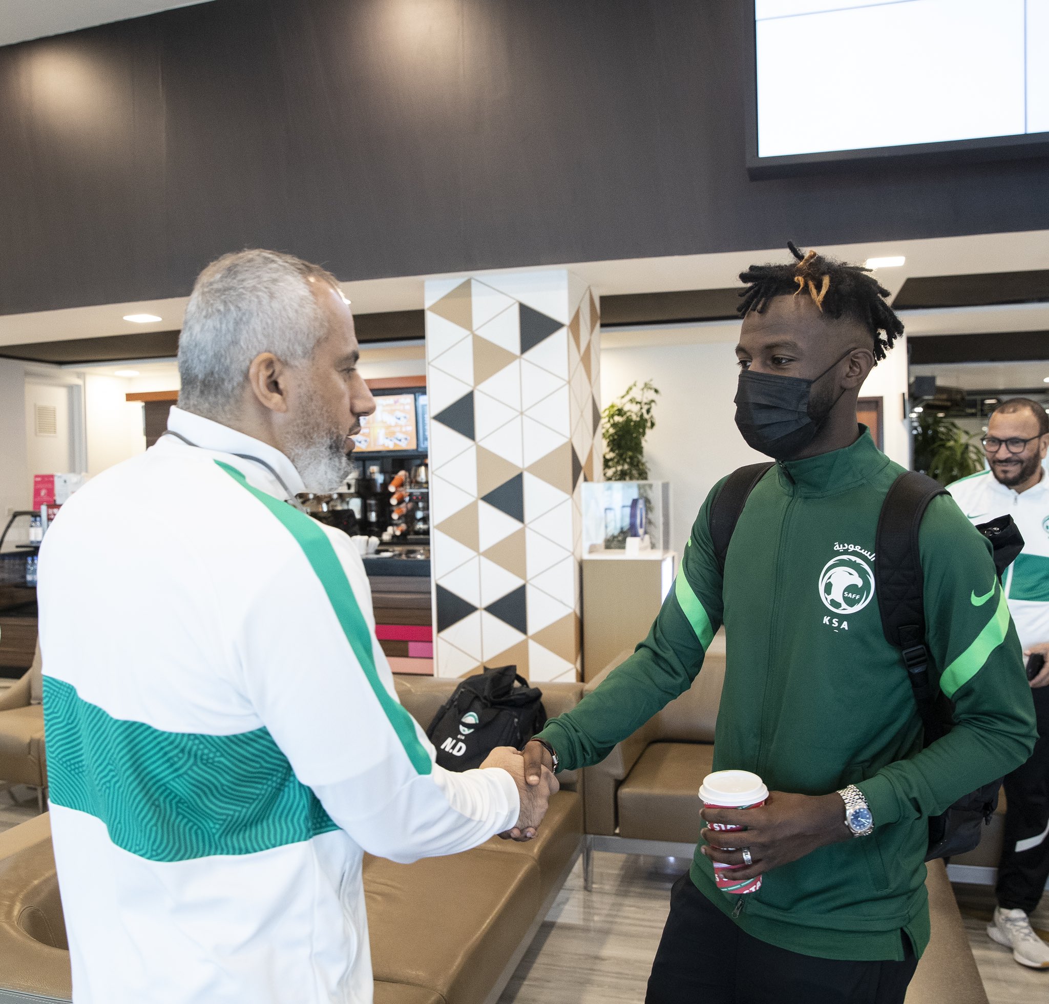 ونشر المنتخب السعودي صور لبعثة المنتخب السعودي، أثناء التواجد في مطار الملك خالد الدولي بالرياض، قبل الكشف عن بدء رحلة الأخضر إلى الدوحة.