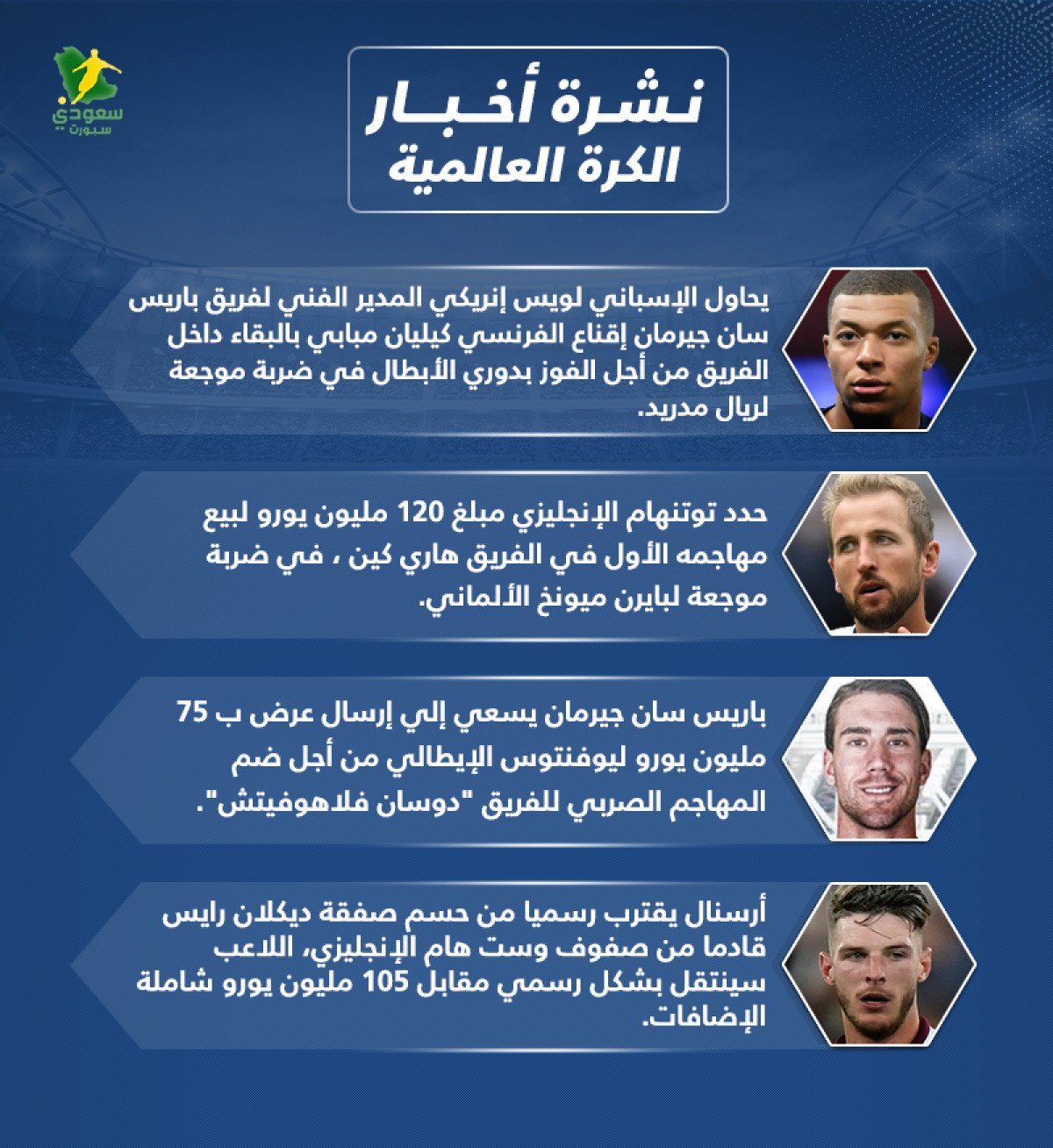 "سعودي سبورت"، يستعرض لكم خلال السطور التالية، أبرز أخبار الميركاتو العالمي، اليوم الثلاثاء الموافق 11 يوليو لعام 2023..