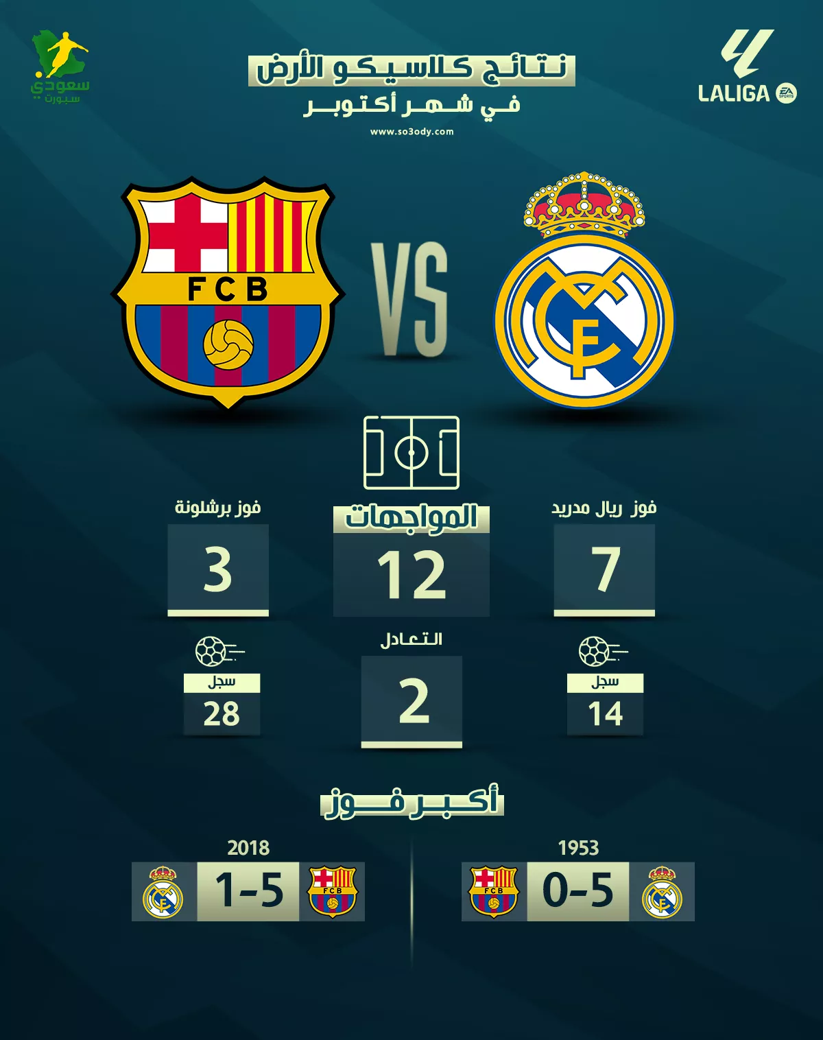احصائيات نتائج الكلاسيكو في الدوري الإسباني خلال شهر أكتوبر: