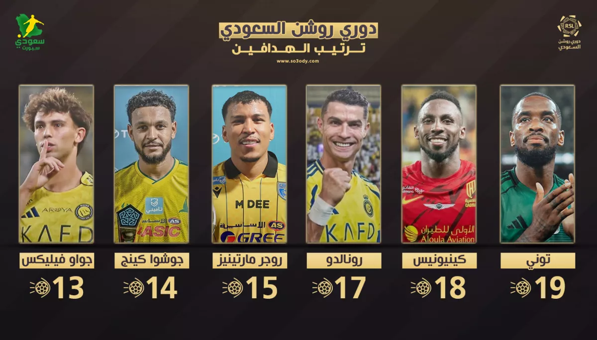 مع غياب رونالدو عن آخر مباراتين لفريق النصر بسبب انزعاجه من الأوضاع داخل النادي، بدأ كل من إيفان توني وكينونيس في اقتناص الفرصة لمحاولة انتزاع الصدارة من نجم البرتغالي، ما جعل المنافسة أكثر إثارة وتشويقًا بين كبار هدافي الدوري.
