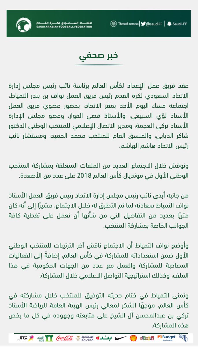 وتم مناقشة العديد من الملفات المتعلقة بمشاركة منتخب السعودية في مونديال روسيا 2018.