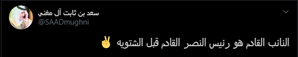 وأشار آل مغني في سلسلة تغريدات عبر صفحته بموقع التدوينات القصيرة، في الساعات الأولى من صباح اليوم الجمعة، إلى أن السويكت، سيقوم بتعيين نائب رئيس جديد، خلال الساعات القادمة.