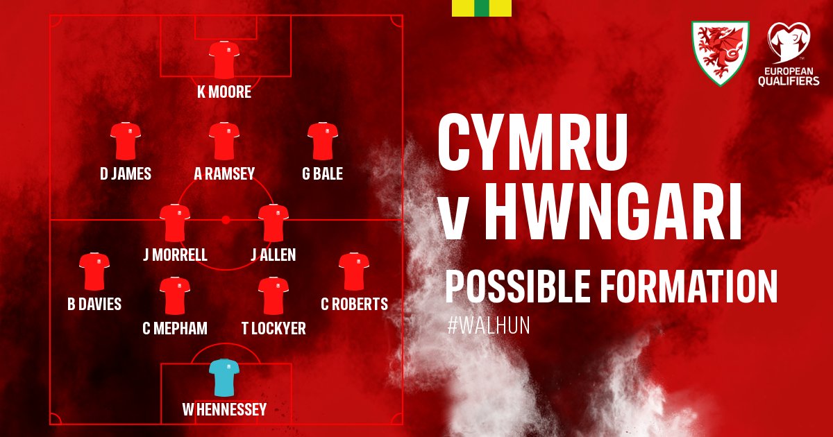 ويخوض مدرب ويلز الأسطورة ريان جيجز المباراة بتشكيلة قوية من خلال إشراك بيل، بالإضافة إلى آرون رامزي ودانييل جيمس تحت رأس الحربة.