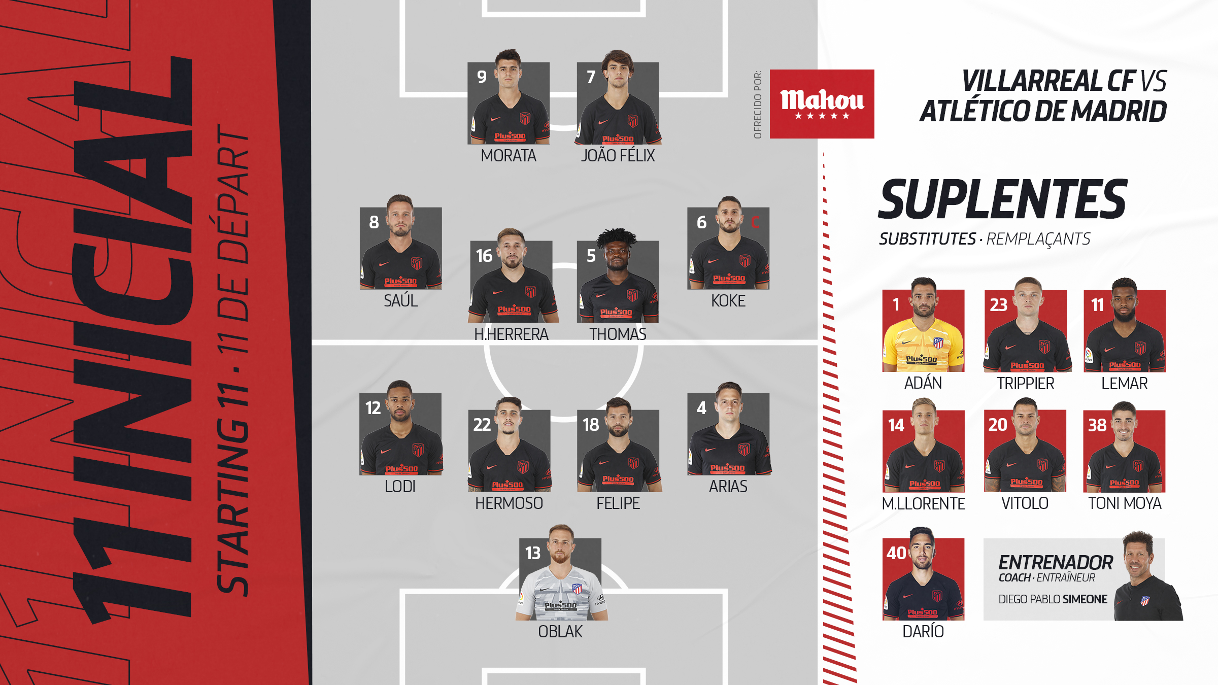 ويعتمد المدرب دييجو سميوني على نجمه الشاب جواو فيليكس للمباراة الثانية على التوالي، على الرغم من اعتراضه على التبديل في قمة برشلونة.