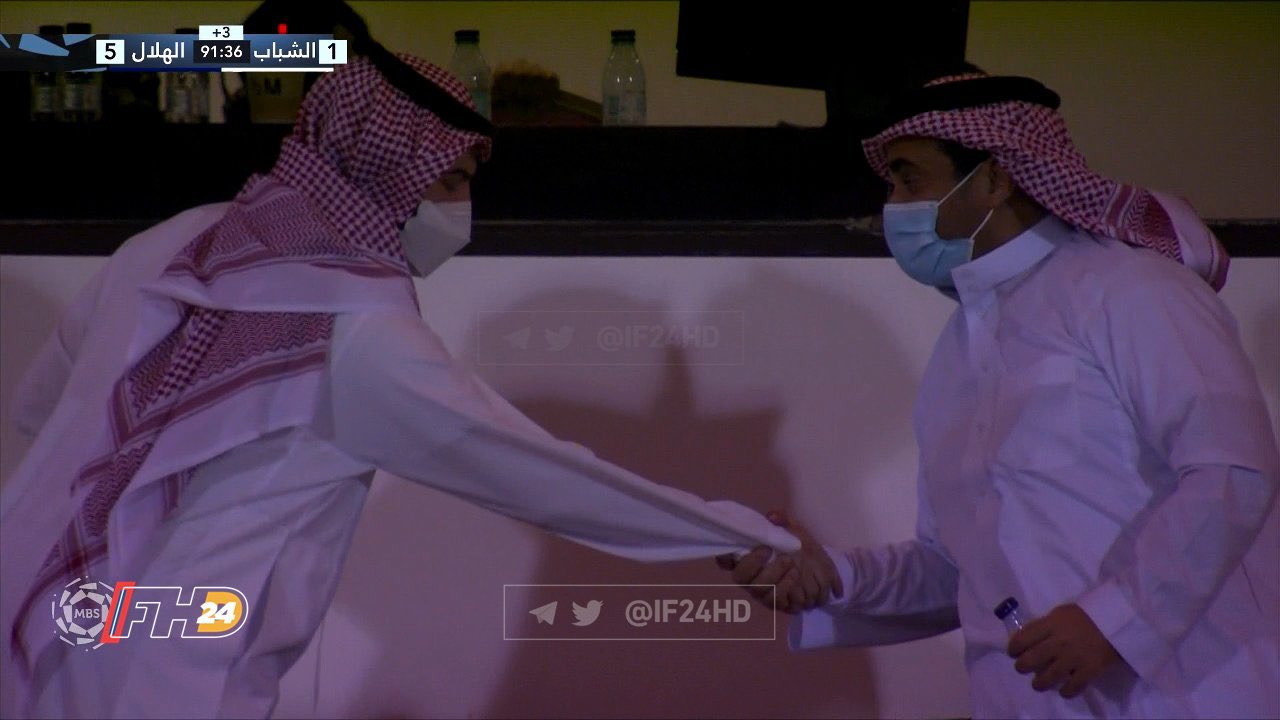 وتناقل رواد موقع التواصل الاجتماعي، "تويتر"، صورة جمعت بين الرئيسين فهد بن نافل وخالد البلطان، في الثواني الأخيرة من لقاء الهلال أمام الشباب.