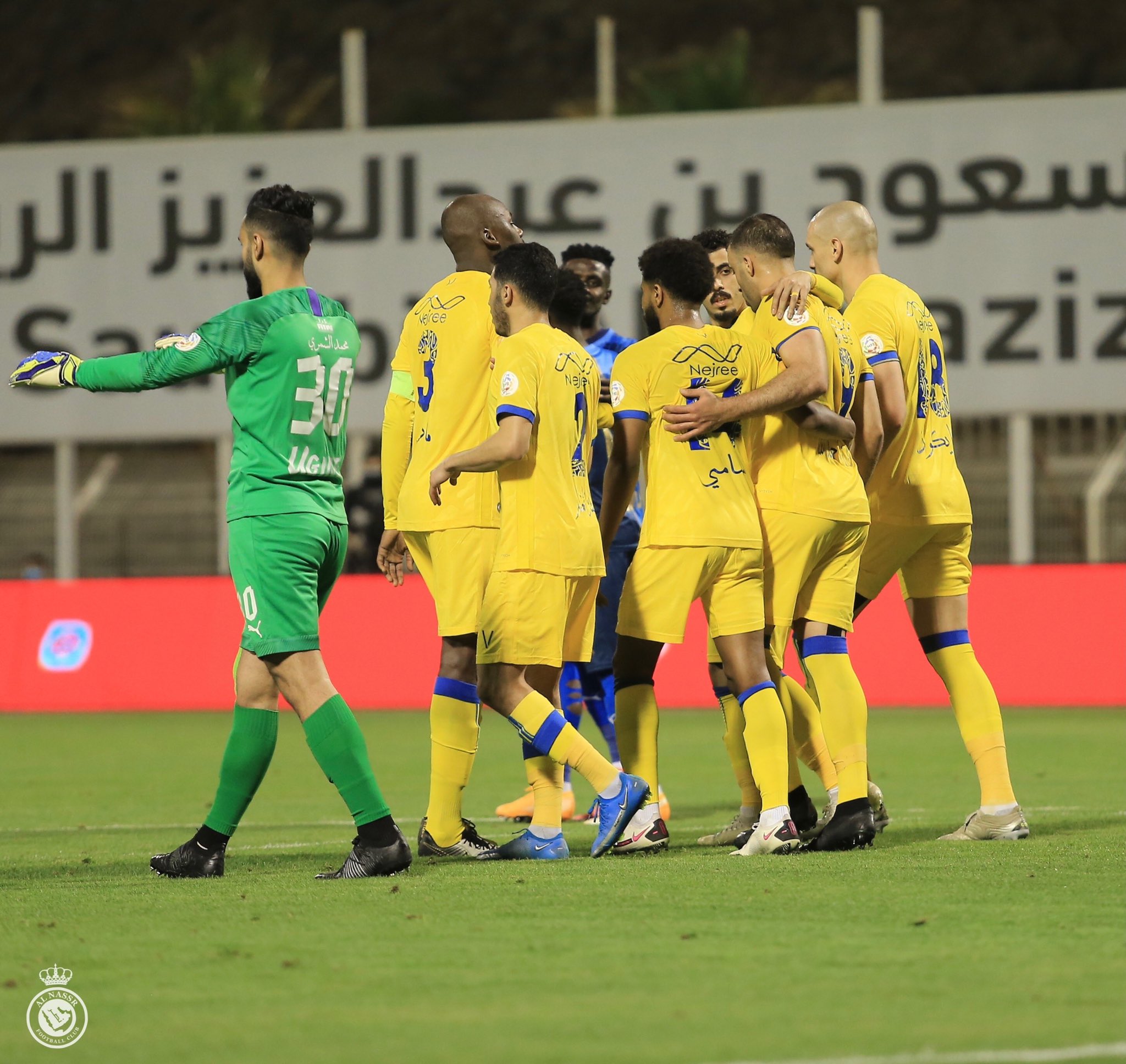 في الصور الأخرى التي نشرها حساب النصر، يظهر أيضًا نور الدين بعيدًا عن فرحة اللاعبين، بالتقدم في النتيجة (1-0).