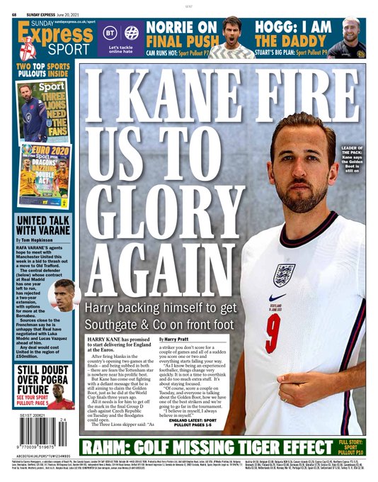 سلطت الصحف الرياضية العالمية اليوم الأحد، الضوء على وعد هاري كين إلى جماهير منتخب إنجلترا، وفوز الألمان على البرتغال بـ"4-2"، بالإضافة إلى اكتمال ديباي تفاصيل انتقاله إلى برشلونة.